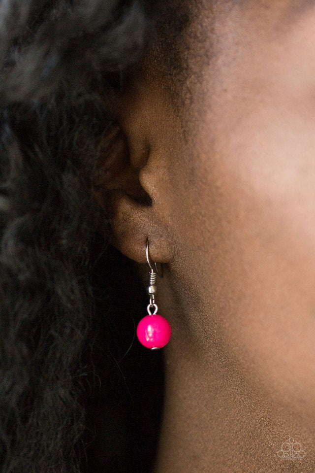 Featuring vivacious pink beads and shimmery silver hoops, mismatched silver chains layer down the chest for a seasonal look. Features an adjustable clasp closure.