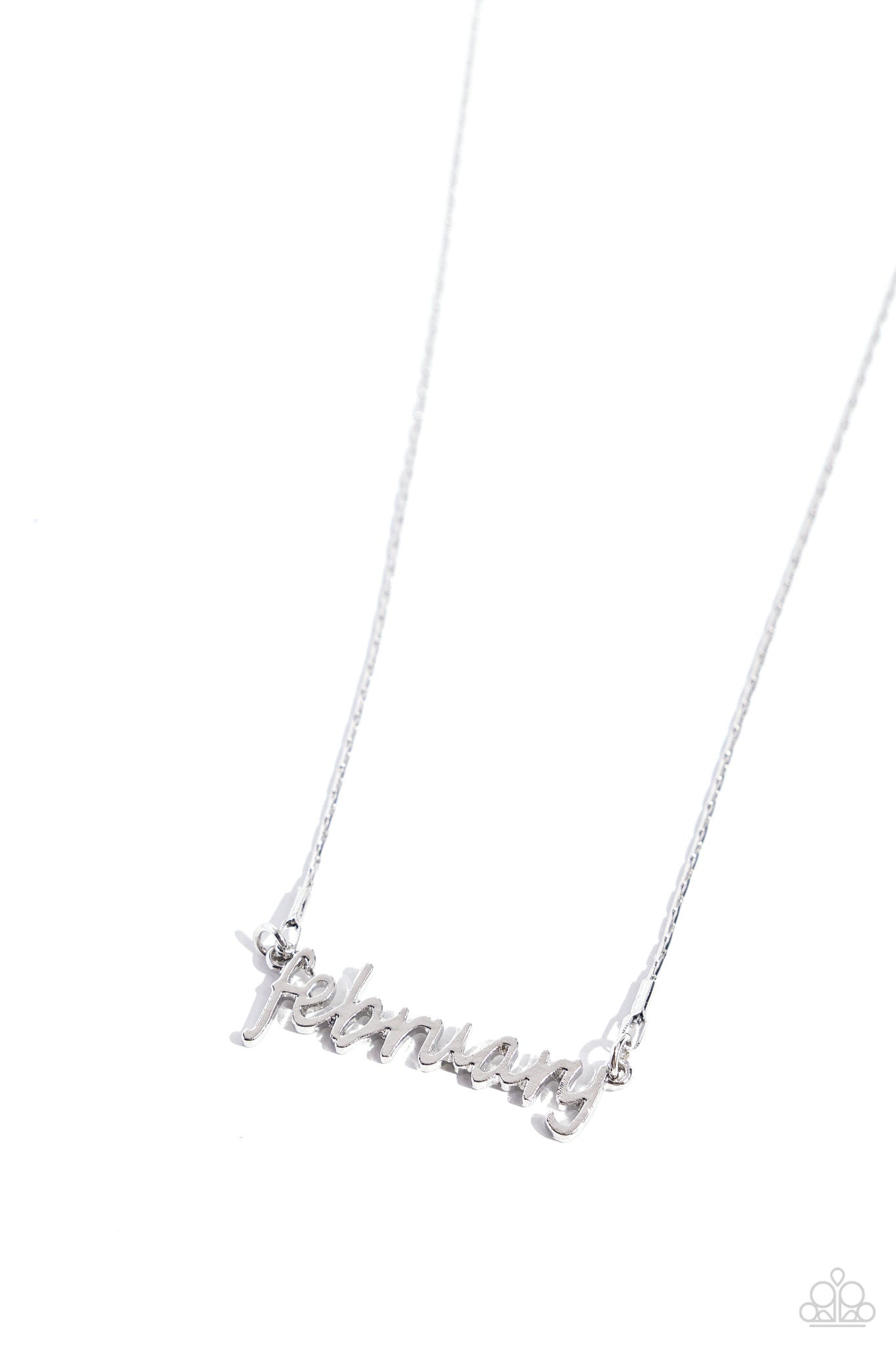 Featuring a cursive font, the word âfebruaryâ is set in the center of an abstract silver chain for a birth month-inspired simple statement. Features an adjustable clasp closure.