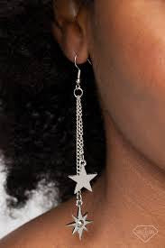 A classic silver chain dances next to a silver oval link chain that is threaded through the center of a high-sheen silver ring, creating a lariat pendant. The silver links are infused with varying sizes of silver stars, a silver disc stamped with the phrase "I love you past the moon and miss you beyond the stars," in a dainty font, and an oversized crescent-moon pendant, falling into a cosmic collection down the chest. Embossed on the inner curve of the lunar pendant, blue rhinestones, brushed in a UV coating add an exaggerated shimmer to the design. A three-dimensional star, dotted with a silver stud, seemingly connects to the classic chain through the ring for additional starry detail. Features an adjustable clasp closure. Due to its prismatic palette, color may vary.