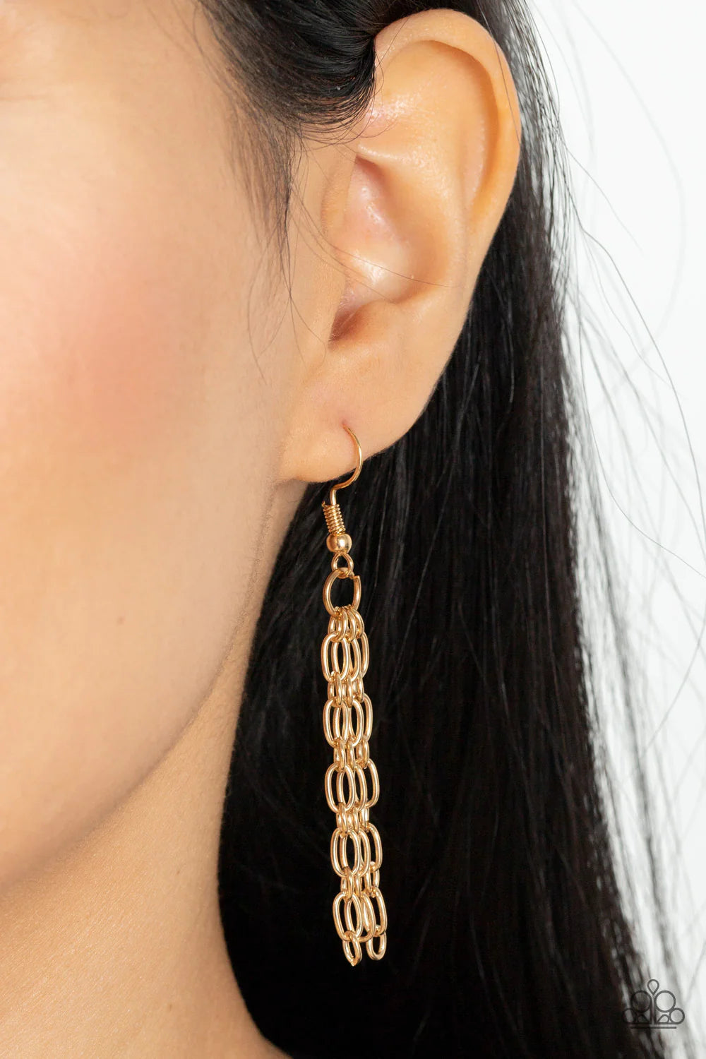 Layer after layer of edgy gold chains drape across the chest, creating an intense industrial display. Features an adjustable clasp closure.