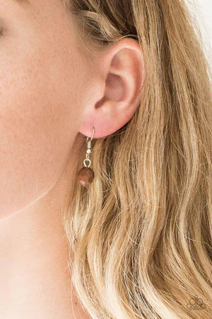 Faceted brown beads and hammered silver hoops gives way to layers of mismatched silver chains for a whimsical look. Features an adjustable clasp closure. Sold as one individual necklace.