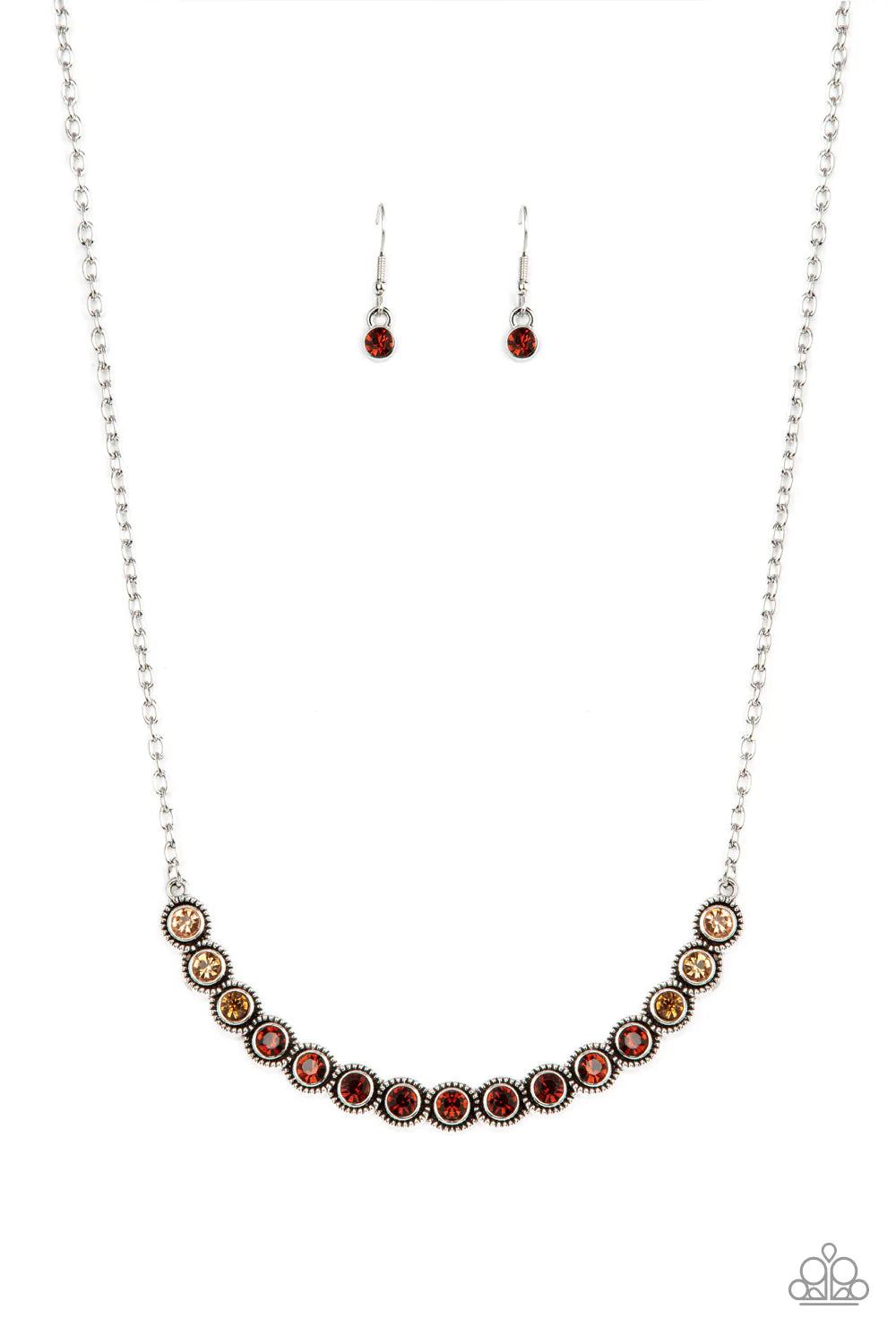 Encased in studded silver fittings, a glittery ombré of topaz rhinestones delicately bows below the collar, creating an enchanting pop of color. Features an adjustable clasp closure.
