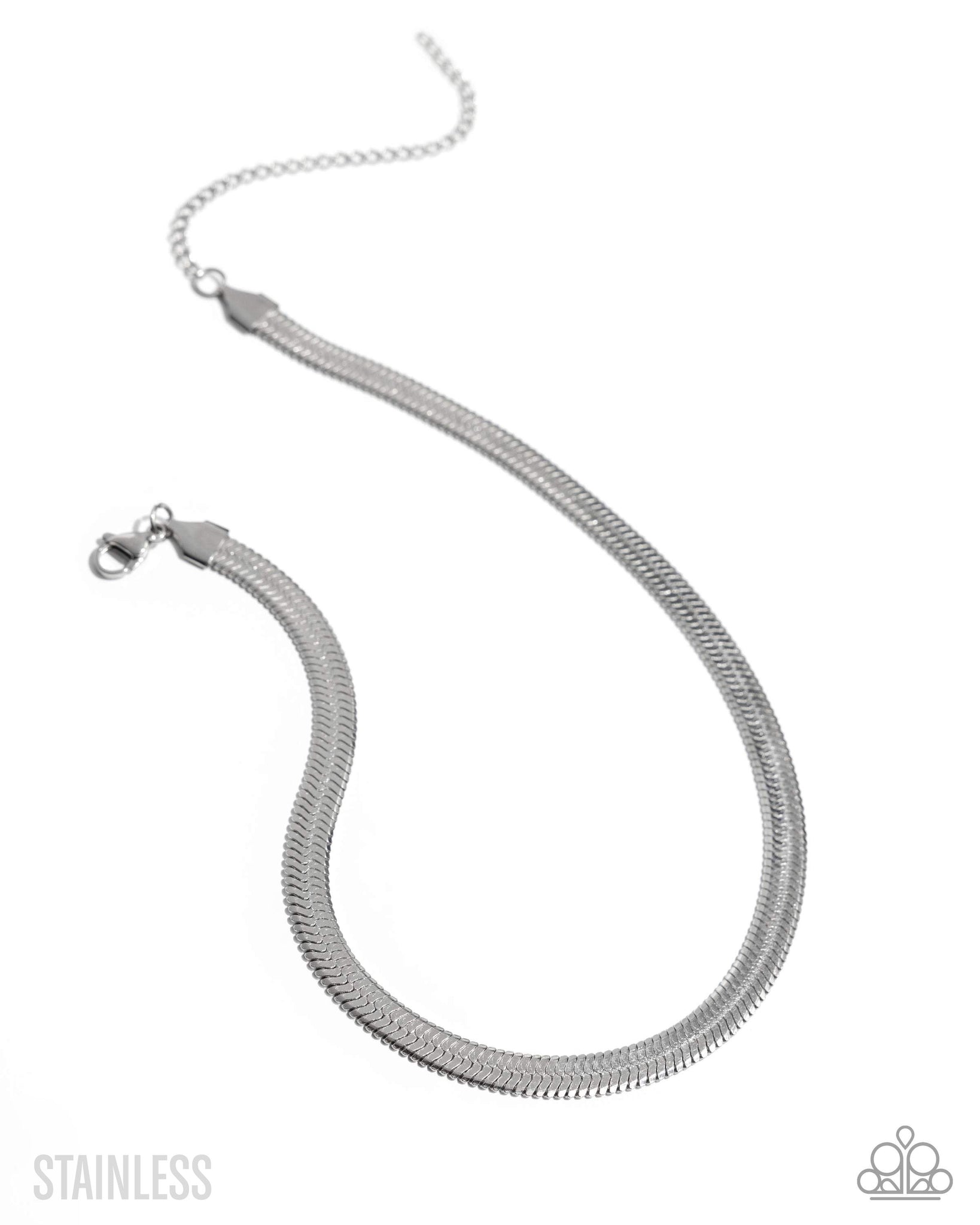 Featuring stainless steel, a herringbone chain coalesces and interlocks around the collar for a boldly beautiful basic. Features an adjustable clasp closure.