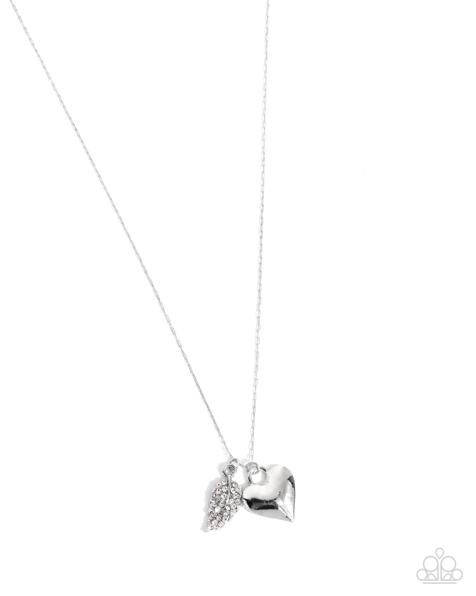 Gliding along a dainty silver paperclip chain, a glistening silver heart pendant joins a white rhinestone-dusted silver leaf for a romantically rustic look. Features an adjustable clasp closure.