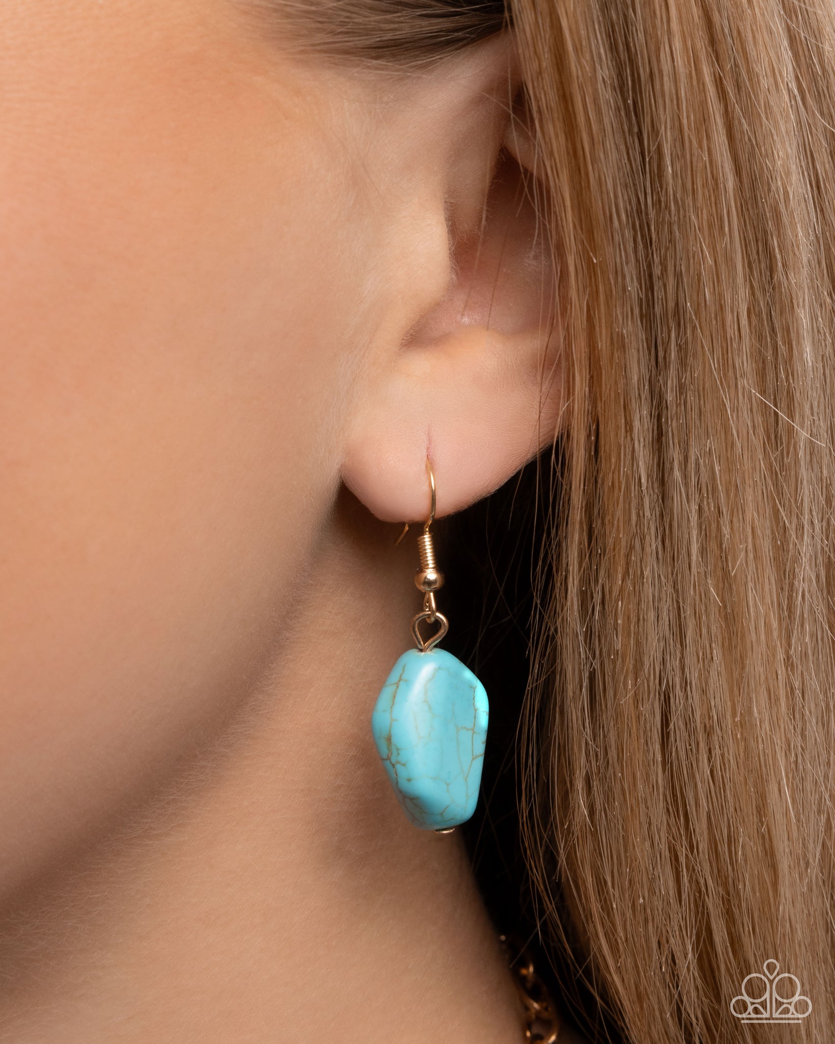 Pressed in an oversized hexagonal prismatic gold frame, a subtly textured half-turquoise stone glistens below the neckline from a glistening gold cable chain for a Southwestern-inspired statement. Features an adjustable clasp closure. As the stone elements in this piece are natural, some color variation is normal.