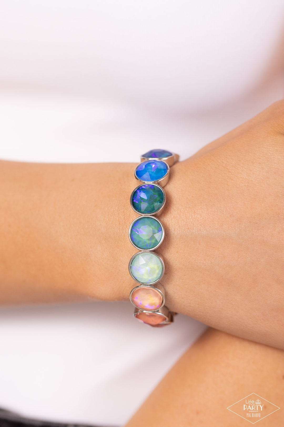 Radiant on Repeat - Multi Blue Purple Green Gem Silver Bring Back Stretchy Bracelet - Paparazzi #P9RE-MTXX-142XX