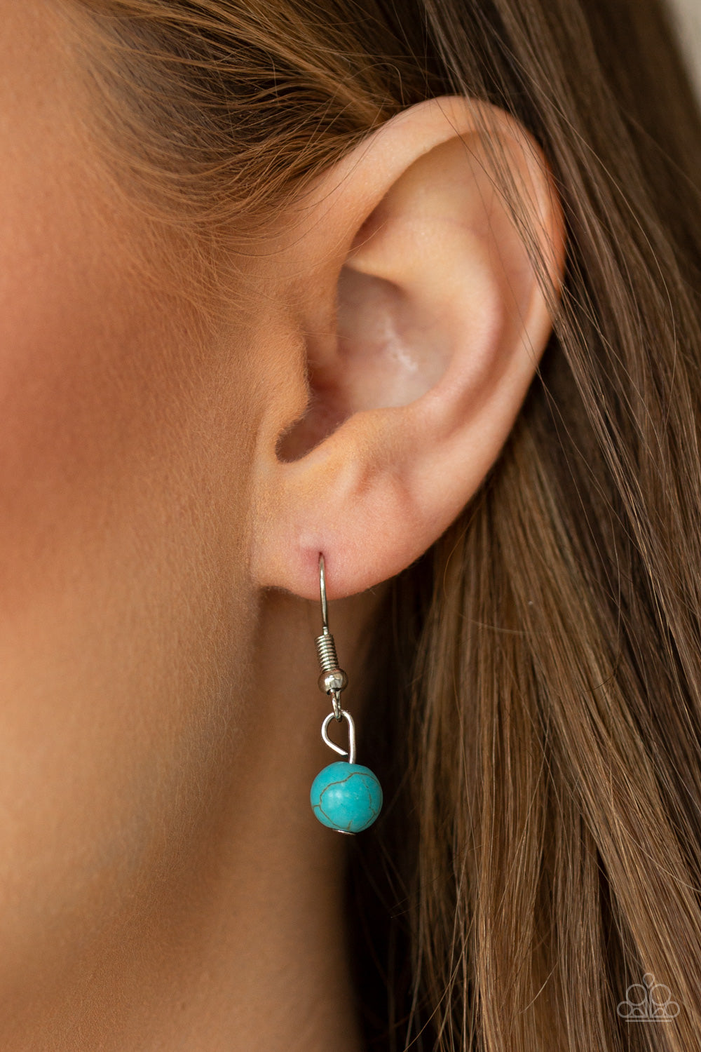 Pinched between a dainty silver fitting, an oversized turquoise stone teardrop pendant swings from the bottom of a lengthened silver popcorn chain for a seasonal flair. Features an adjustable clasp closure.