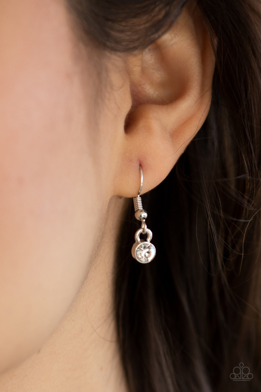 Bordered in dainty white rhinestones, an airy silver locket inspired pendant is dotted with a pink heart-shaped rhinestone as it flirtatiously glides along a dainty silver chain below the collar. Features an adjustable clasp closure.